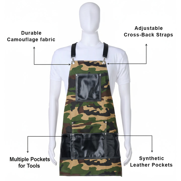 Regale Tactical Camouflage Apron With Black Synthetic Leather Accents