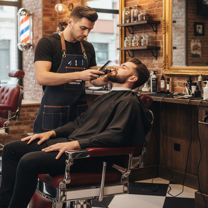 Regale Professional Barber Shop Blue Denim Apron with Leather Straps