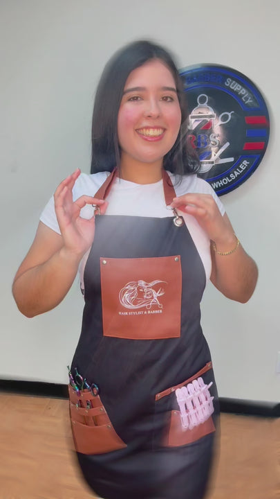 The Professional Barber & Hairstylist Salon Apron represents the perfect fusion of functionality, durability, and sophisticated style for the modern hair professional. Crafted with meticulous attention to detail, this premium apron features a striking black cotton body complemented by rich brown synthetic leather accents that create a timeless, professional aesthetic. The apron's thoughtful design includes Tie back closure leather straps that distribute weight evenly across the shoulders, preventing neck strain during long working hours.